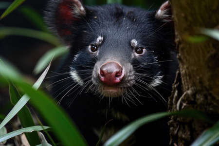 Distinctive Tasmanian devil animal jungle portrait. Morning nature wild shot funny. Generate AI