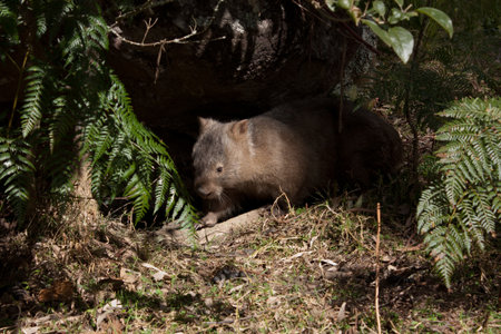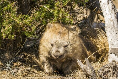 A wild wombat taken near a mountain lodge near Dove Lake, Cradle Mountain in Tasmania, Australia