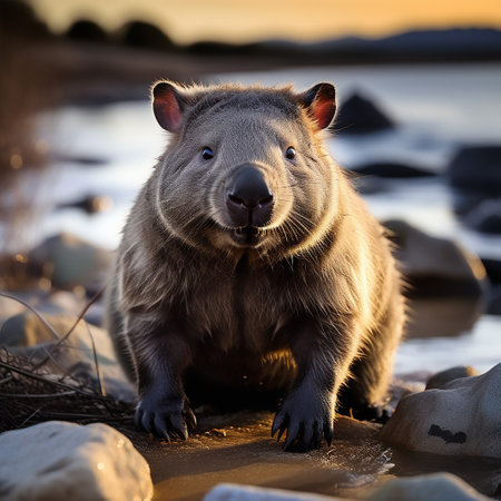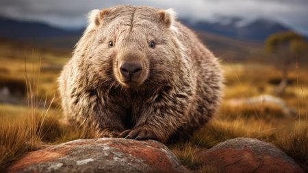 A breathtaking shot of a Wombat his natural habitat, showing his majestic beauty and strength.