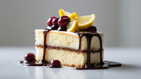AI Generated. Delicious Layered Cake Slice with Lemon Berry Chocolate