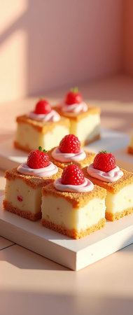 Colorful fruit jelly cake topped with fresh raspberries arranged on a decorative plate