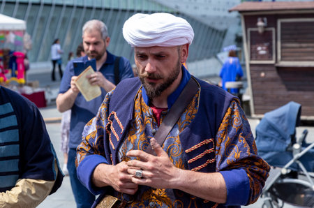 Craiova, Dolj County, Romania – May 14, 2022: People in authentic historical clothing at a medieval festival Michael le Brave ( Mihai Viteazul ).