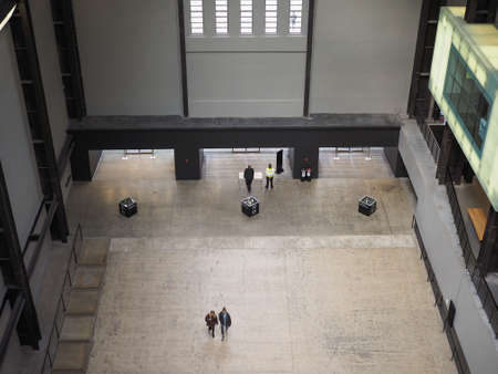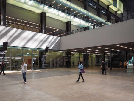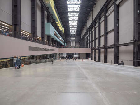 LONDON, UK - AUGUST 2, 2018: Visitors in the interior of famous Tate Modern art gallery located in the former South Bank Power Station, on the Bankside area of the London Borough of Southwark.