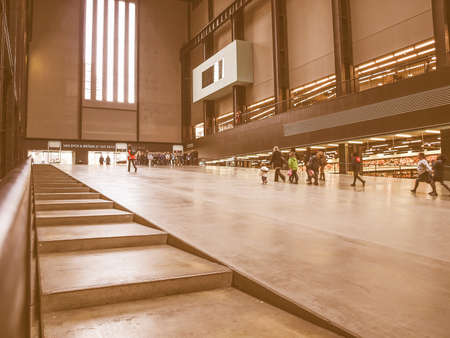 LONDON, UK - CIRCA MARCH, 2009: Tourists visiting the Turbine Hall which once housed the electricity generators of the power station now part of Tate Modern art gallery in South Bank vintage