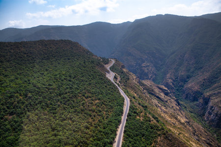 Vorotan river valley near Tatev, Armenia. Road between Tatev and Halidzor visible.