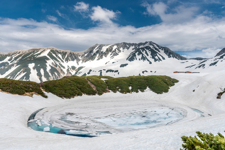 Mountain and lake at Murodo in Japan Alpine route