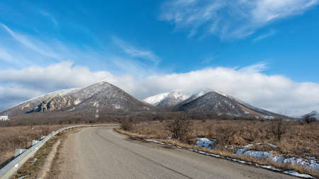 The top of the mountain in the snow. Japan. Hakkaydo. Shiretoko Peninsula. Shiretoko National Park. An excellent illustration.