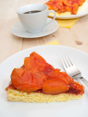 Homemade Dessert - Cake With Apricots and Jelly and Espresso Coffee