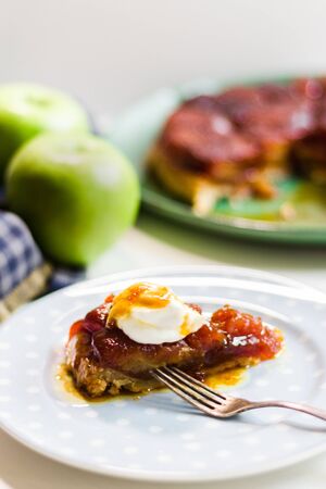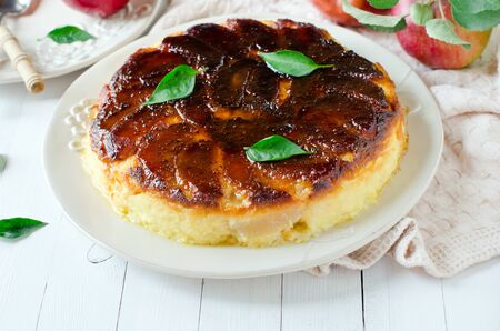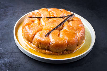 Traditional French Tarte Tatin with caramelized apples and crust pastry.