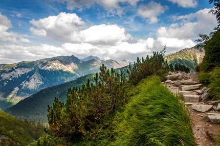 Path on the edge of the Tatra mouintains during the sunny summer day