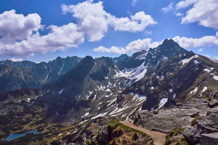 View of the hiking trail on Koprovsky peak in Hincova Valley. Slovak High Tatra Mountains.