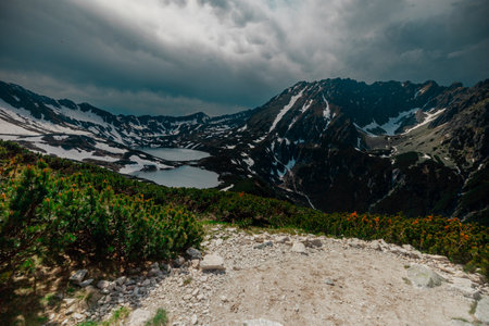 Western Tatras scenery with mountain lakes, Slovak republic. Hiking theme. Seasonal natural scene.