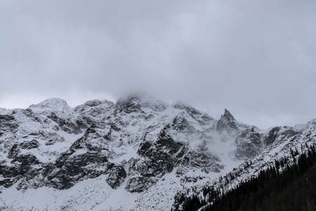 Mountain peaks near Morskie Oko or Sea Eye Lake in Poland at Winter. Tatras range