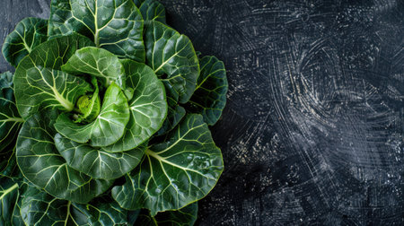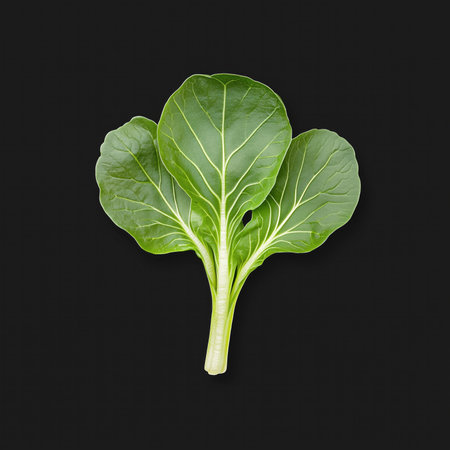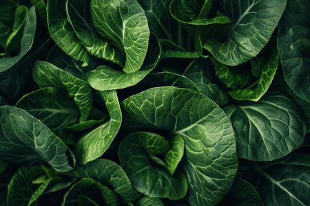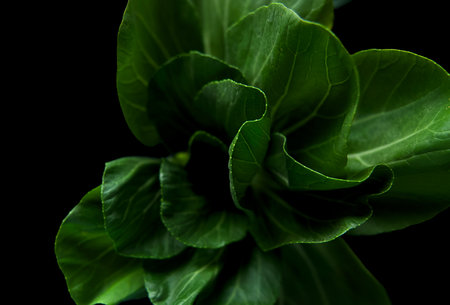 Detailed view of vibrant green bok choy leaves, A close-up of vibrant green bok choy leaves against a dark background