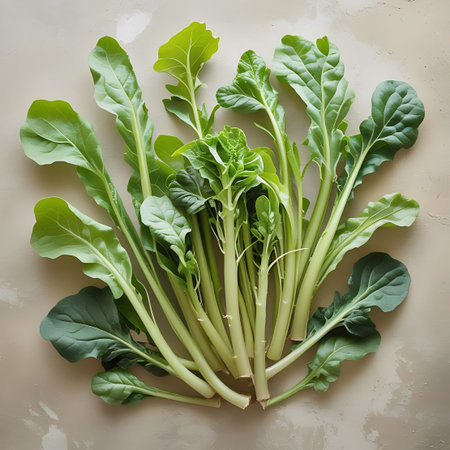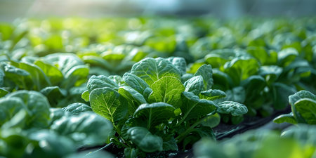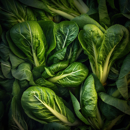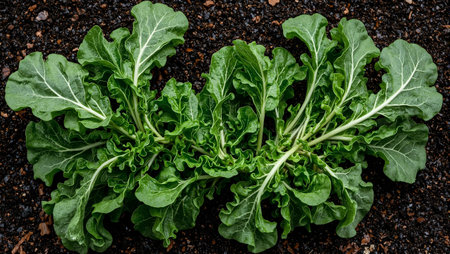 A close-up view of vibrant green leafy vegetables thriving in a garden bed. This image showcases the lush texture and health benefits of fresh produce.