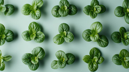 A Symphony of Fresh Green Basil Leaves on a Soft Aqua Background
