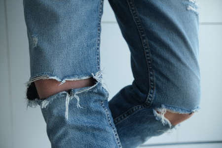Ripped jeans, close-up. Fashion denim pants