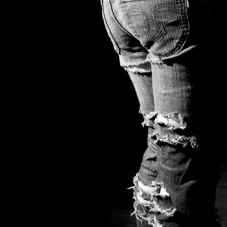 Lacerated jeans, ragged pants, girl, black background