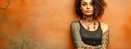 portrait of a young attractive tattooed woman, banner with copy space