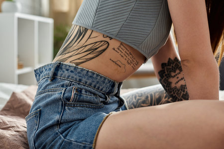 A walking art exhibition. A cropped shot of a tattooed young woman.
