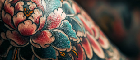 Exploring vibrant tattoo ink textures in colorful floral designs on skin