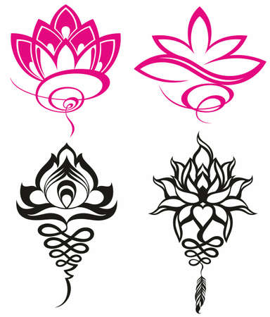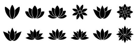 Set of stylized lotuses. Collection of lotus flowers for a logo. Tattoo.