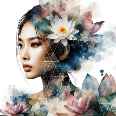 Mystical Fusion: A Geometric Portrait of Serenity and Nature with Generative AI.