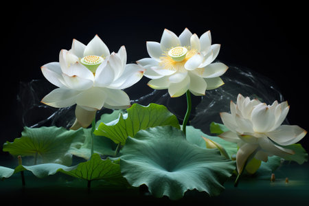 white lotus flower dark background pictorial rendering