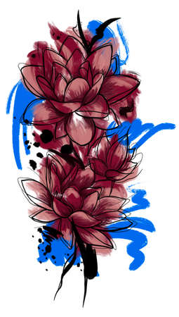 Lotus flower. Hand drawn vector illustration. Tattoo art.