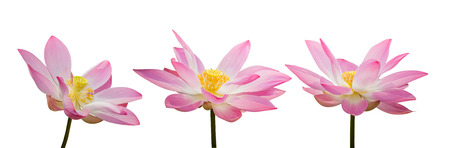 collection of pink lotus flower blossoms isolated on white background, File contains a clipping path.