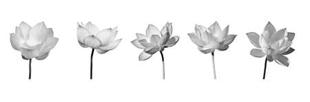 Lotus flower collections black and white isolated on background. File contains with clipping path so easy to work.