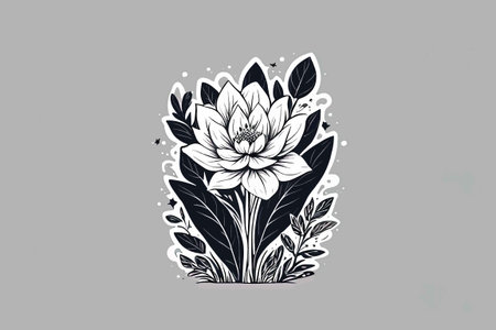 An AI generated illustration of artistic black and white line drawing of a flower on white background