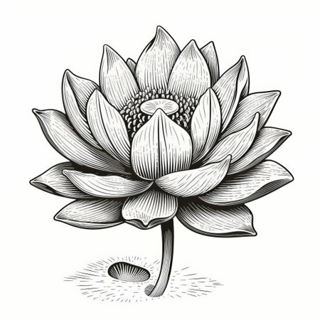 Illustration of lotus flower in style. Black and white lotus pattern