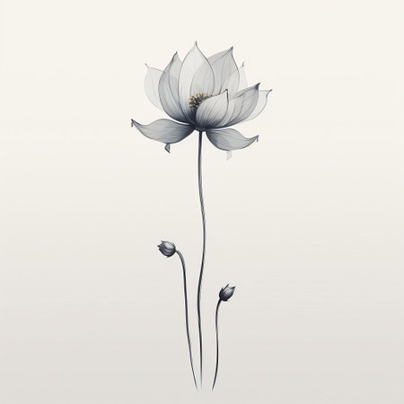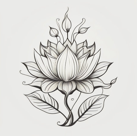lotus flower with a long stem and minimalist linear design on a white background. this monochrome image captures the elegance of the lotus flower, showcasing its beauty in a simple and modern style. perfect for those who appreciate clean and sophisticated aesthetics. ai generated