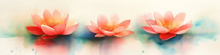 Three Soft Orange Watercolor Lotus Flowers with Delicate Petals, Watercolor Splashes on Canvas