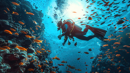 Adventuresome scuba diver discovering the tranquil underwater environment