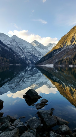 An AI generated illustration of majestic mountains revealing the majestic calm crisp beauty of nature