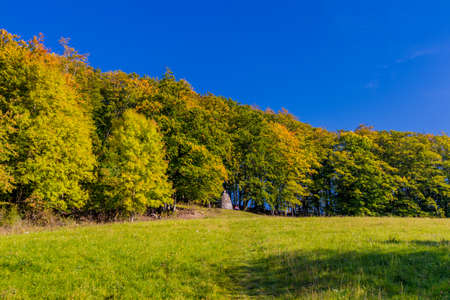 Beautiful orange and red autumn forest, many trees on the orange hills germany rhineland palantino