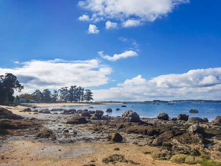 Rocky coast of Sinas Beach in Vilanova de Arousa, Galicia, Spain