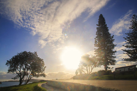 Sunrise over the beach in south west rocks Australia.Relaxing corner in the morning watching the sunrise.Beautiful view point.Beautiful view point watch the sunrise in the morning at South west rocks.