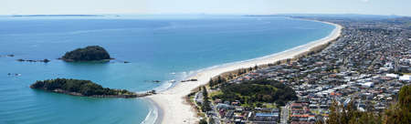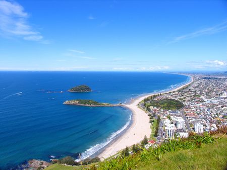 View on Touranga city and Papamoa Beach from Mount Maunganui on northern island of New Zealand