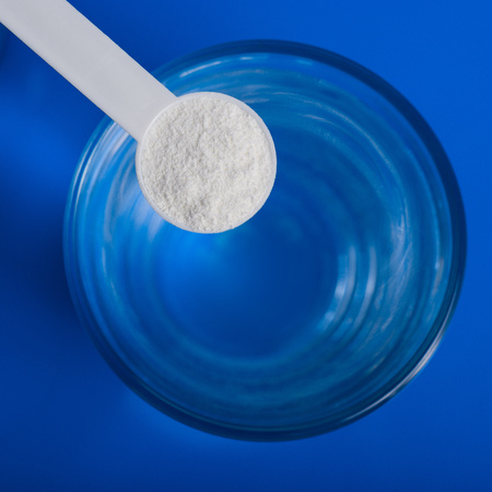 Collagen powder drink, dietary supplement at blue.