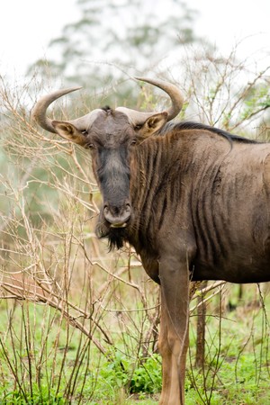 blue wildebeest antelope standing in the bush