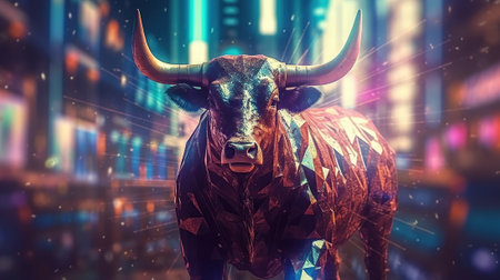 Stylized Geometric Financial Bull on Dark Background, Symbolizing Optimism in Market Trends