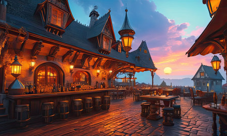 Celebrate the lively atmosphere of a beer barrel brewery nestled in the heart of Ireland. Immerse yourself in the playful and festive ambiance, with high-angle views and rustic tavern scenes. Experience the unique blend of cottagepunk and salvagepunk vibes in this unforgettable experience.