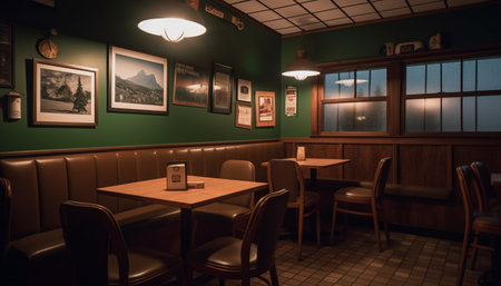 Cozy Diner Interior Decorated With Warm Lighting in an Urban Setting During Evening Hours