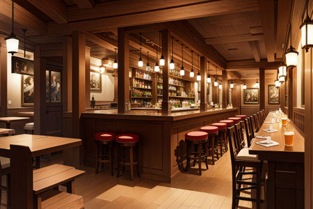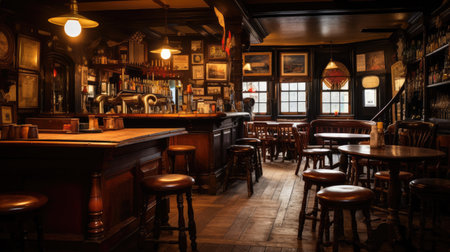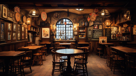 The lively atmosphere of the empty brewery pub. Generative AI