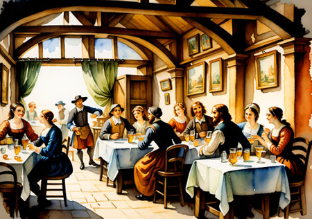 Restaurant - A place where people can order and eat. AI generated illustration
