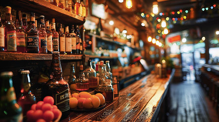 A serene evening scene inside a cozy bar highlighting the warm ambiance and inviting interior.