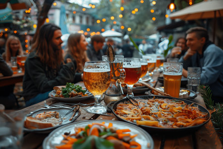 Friendship Day, . A group of friends sharing a traditional meal in a cozy pub in Dublin, their laughter and conversation echoing through the room.